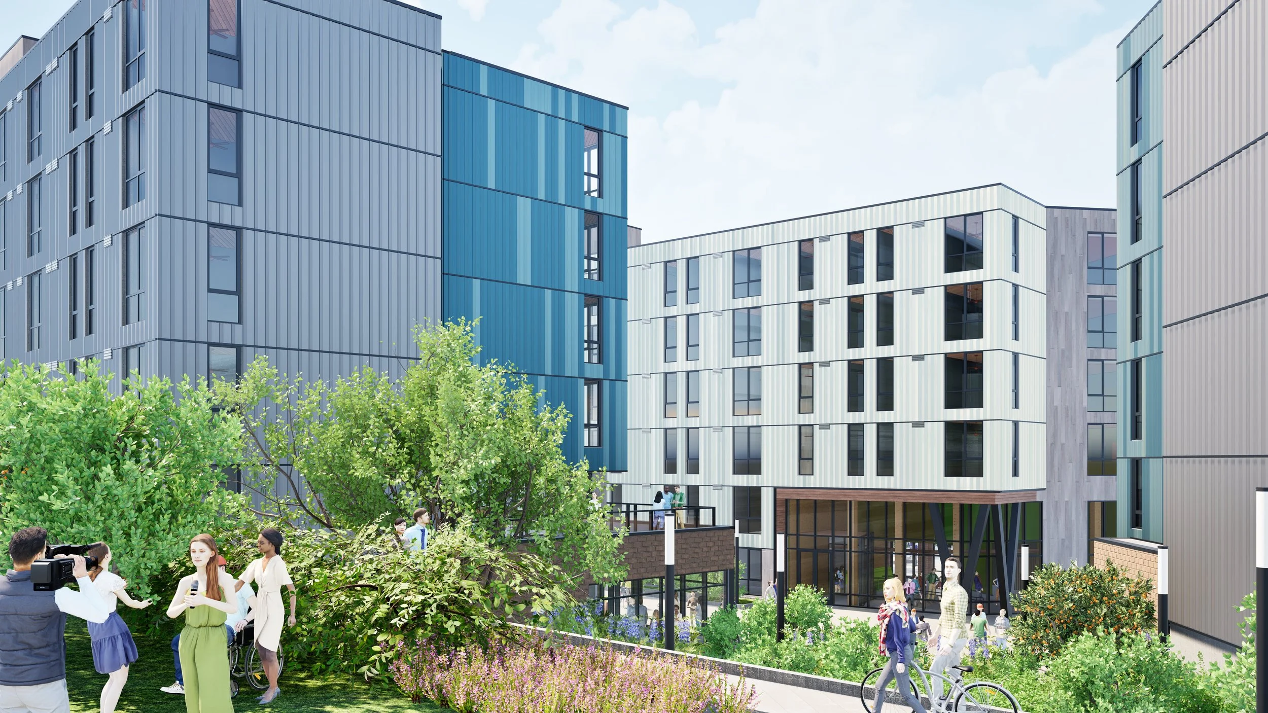 Blakeley Village, an existing 78-unit family facility anticipated to be demolished by November 2025 and replaced with a new 487-unit, 1,012-bed facility for students expected to be open in Autumn 2028.